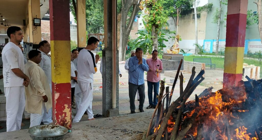 रुड़की।महिला कांग्रेस की जिलाध्यक्षा रश्मि चौधरी के पति के अकस्मात निधन पर अनेक नेताओं,गणमान्य लोगों तथा पत्रकारों में उनके निवास पहुंचकर श्रद्धांजलि अर्पित की।स्वर्गीय कैप्टन सुरेंद्र सिंह चौधरी का पार्थिव शरीर रश्मि चौधरी के जादूगर रोड स्थित निवास से मालवीय चौक शमशान घाट ले जाया गया।सूबे के पूर्व मुख्यमंत्री हरीश रावत ने मालवीय चौक स्थित शमशान घाट पहुंचकर रश्मि चौधरी के पुत्रों को सांत्वना दी। विधायक फुरकान अहमद,प्रदीप बत्रा व ममता राकेश,जीपी अध्यक्ष भावना पांडे,कांग्रेस के प्रदेश महामंत्री सचिन गुप्ता,वरिष्ठ कांग्रेस नेता गौरव चौधरी,महानगर कांग्रेस अध्यक्ष एडवोकेट राजेंद्र चौधरी,पूर्व सांसद राजेंद्र कुमार बॉडी,कलीम खान,एआईएमआईएम के प्रदेश अध्यक्ष डॉ०नैयर काजमी आदि ने रश्मि चौधरी के निवास पहुंचकर उनके परिवार को ढांढस बंधाया और कहा कि इस दुख की घड़ी में हम आपके पूरे परिवार के साथ हैं।इस अवसर भाजपा नेता एडवोकेट पंoममतेश शर्मा,नवीन जैन एडवोकेट,अशोक चौधरी एडवोकेट,बार एसोसिएशन रुड़की के पूर्व अध्यक्ष प्रवीण तोमर,सुभाष सरीन,प्रोफेसर राजेश चंद्रा,हंसराज सचदेवा,सुधीर शांडिल्य,राव मुन्ना,पार्षद बेबी खन्ना व वीरेंद्र गुप्ता,डॉक्टर राकेश गौड,संजय पाल, तुषार अरोड़ा,वीरेंद्र जैन,चंद्रभान स्नेही,तंजीम फारुकी,डॉ०एमबी सागर,अनिल गोयल,देशराज पाल,नरेश प्रिंस, जितेंद्र कपूर,प्रमोद जौहर,भानु प्रताप,सलमान फरीदी,आदेश सैनी एडवोकेट,जेपी गुप्ता,इमरान देशभक्त,सैयद नफीसुल हसन,प्रेमनाथ सेठी सहित स्वर्गीय कैप्टन सुरेंद्र सिंह चौधरी के पुत्र अर्पित चौधरी,समर्पित चौधरी व विभोर चौधरी के अलावा रिश्तेदार आदि प्रमुख रूप से मौजूद रहे।
