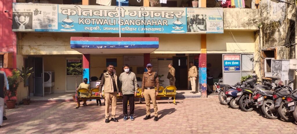 श्रीमान वरिष्ठ पुलिस अधीक्षक महोदय जनपद हरिद्वार द्वारा मा0 न्यायालय द्वारा जारी आदेशिकाओं को शतप्रतिशत तामिल करने हेतु निर्देशित किया गया था जिसके अनुपालन में प्रभारी निरीक्षक महोदय द्वारा टीम गठित की गई। जिसमें थाना हाजा से उप निरीक्षक विपिन कुमार हेड कांस्टेबल हेड कांस्टेबल अशोक तिवारी के रवाना सुधा थाना क्षेत्र में देखरेख शांति व्यवस्था चेकिंग संदिग्ध/ व्यक्ति NBW तामील में रवाना थे। दिनांक 21/11 2023 को अभियुक्त नफीस अहमद पुत्र हनीफ अहमद निवासी करौंदी थाना भगवानपुर जनपद हरिद्वार के मस्कन पर दबिश दी गई अभियुक्त घर पर मौजूद मिला अभियुक्त को कारण गिरफ्तारी बताकर गिरफ्तार किया गया अभियुक्त को समय से माननीय न्यायालय के समक्ष पेश किया जाएगा।